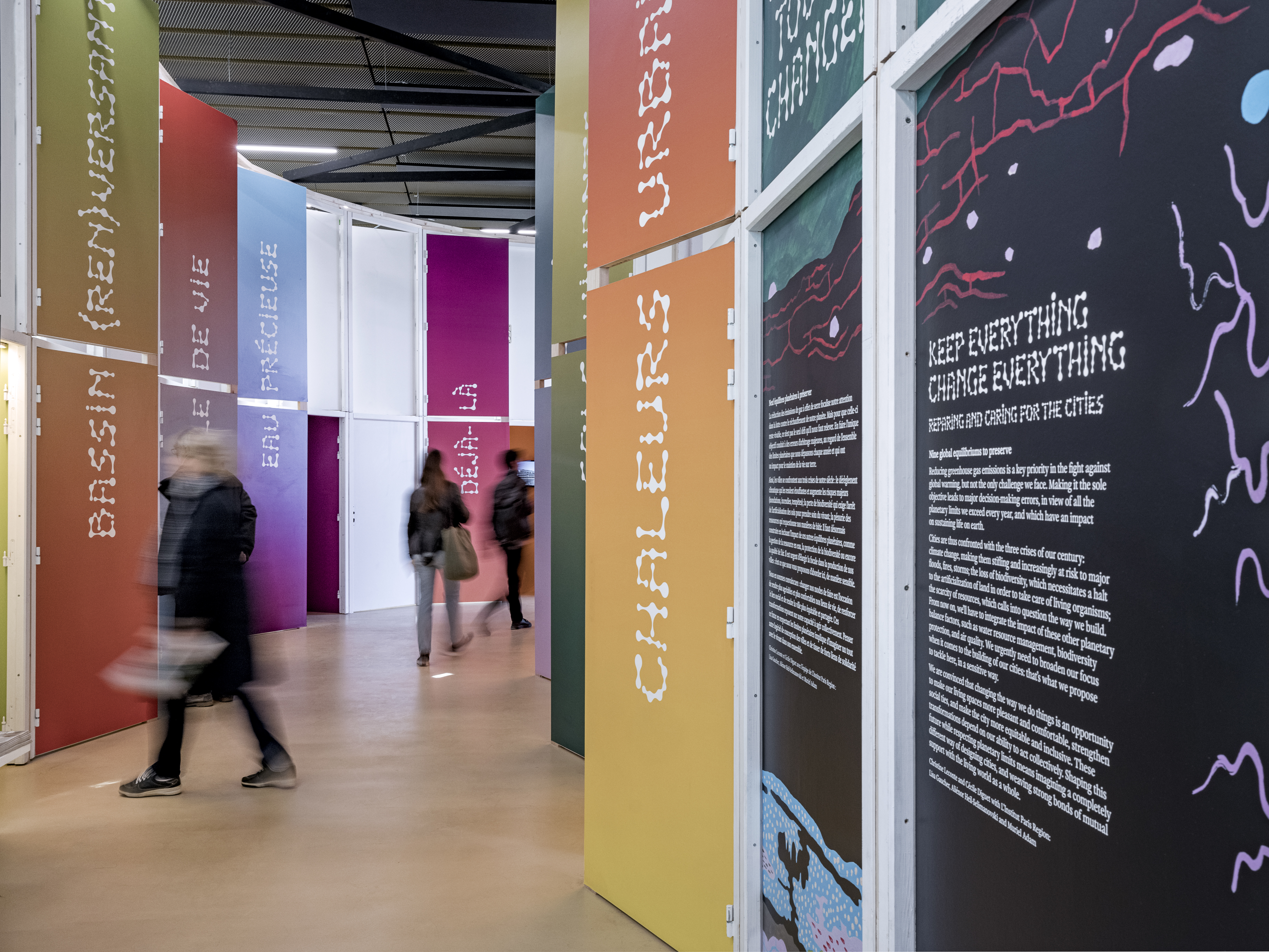 Objet : Scénographie de l’exposition “Tout garder/tout changer, Réparer et prendre soin des villes” pour la BAP 2025