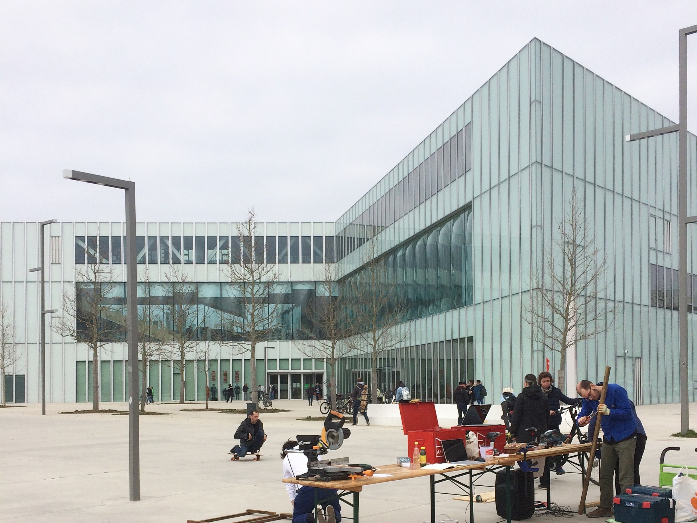 Après notre résidence d’architecture à Picauville, Territoires Pionniers I Maison de l’architecture de Normandie, nous a invité, dans le cadre de Chantiers Communs, le mois de l’architecture à Caen, à venir détourner du mobilier urbain. Sous la forme d’un chantier ouvert sur une journée, nous avons réinterprété et suggéré de nouveaux usages pour la grande esplanade qui jouxte la nouvelle bibliothèque Alexis de Tocqueville et le Pavillon.