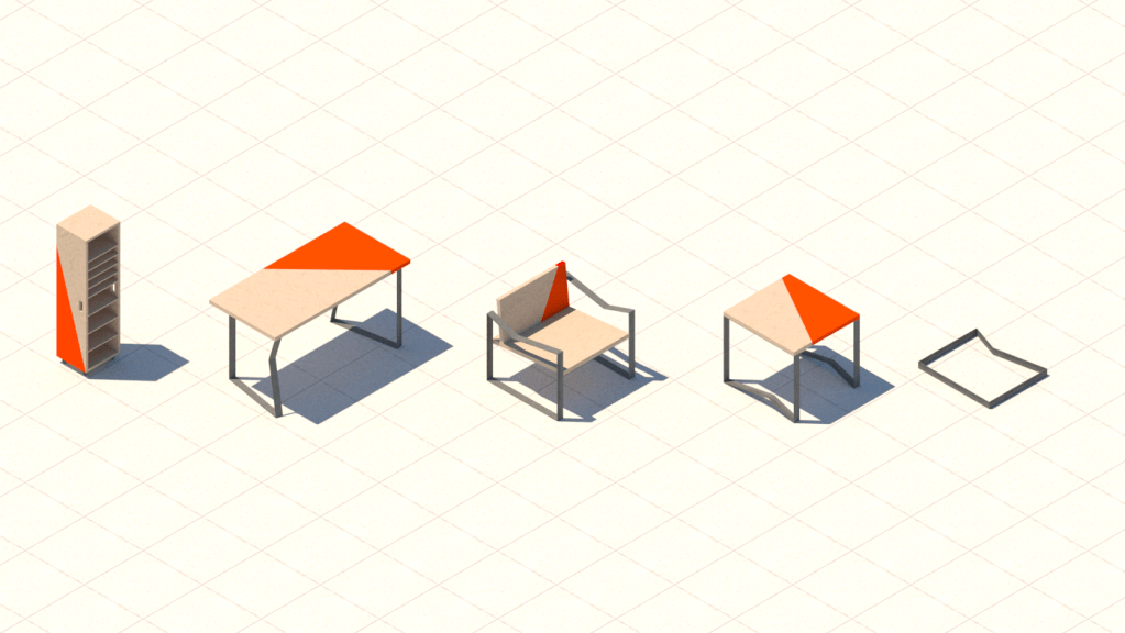 à la suite de la rénovation des locaux associatifs commandés par Carton plein 75, dans le 11ème et 18ème arrondissement, l’atelier A+1 a été missionné pour dessiner une gamme de mobilier à l’usage de ses futurs occupants.
