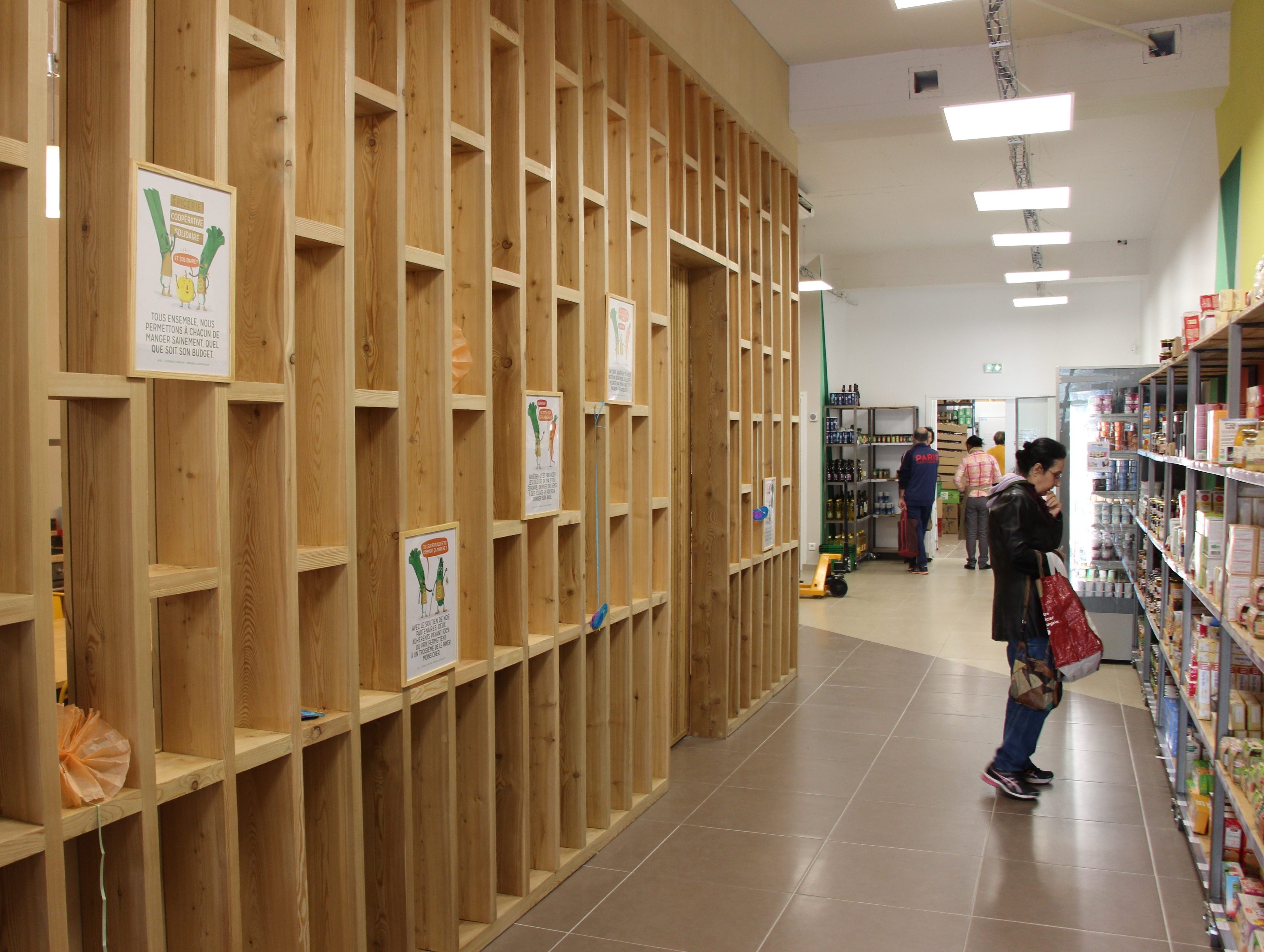 Nous avons été missionnés par l’association Ma P’tite Échoppe, crée et soutenue par le Secours Catholique, pour l’aménagement de l’épicerie coopérative et solidaire d’Antony.