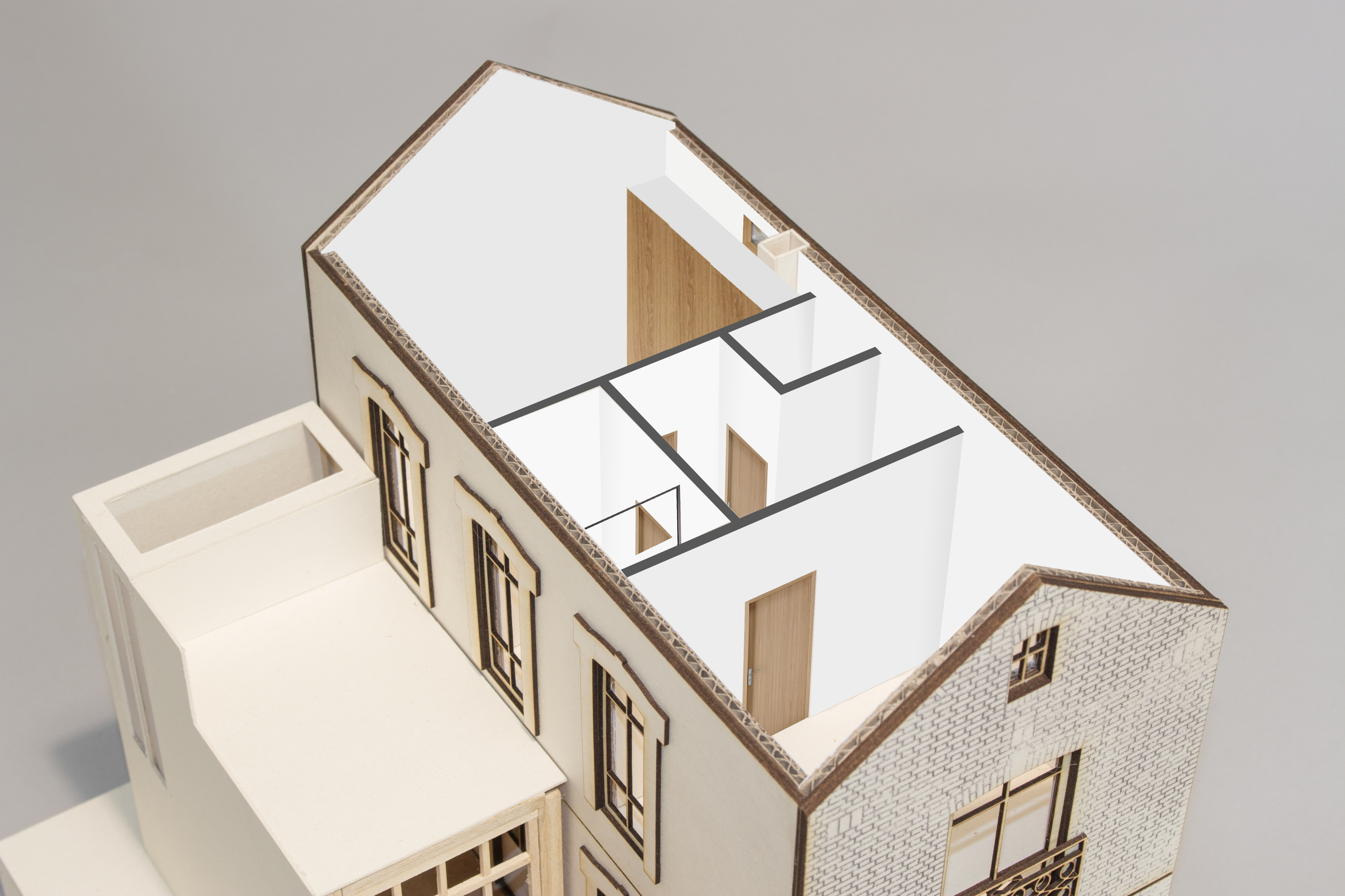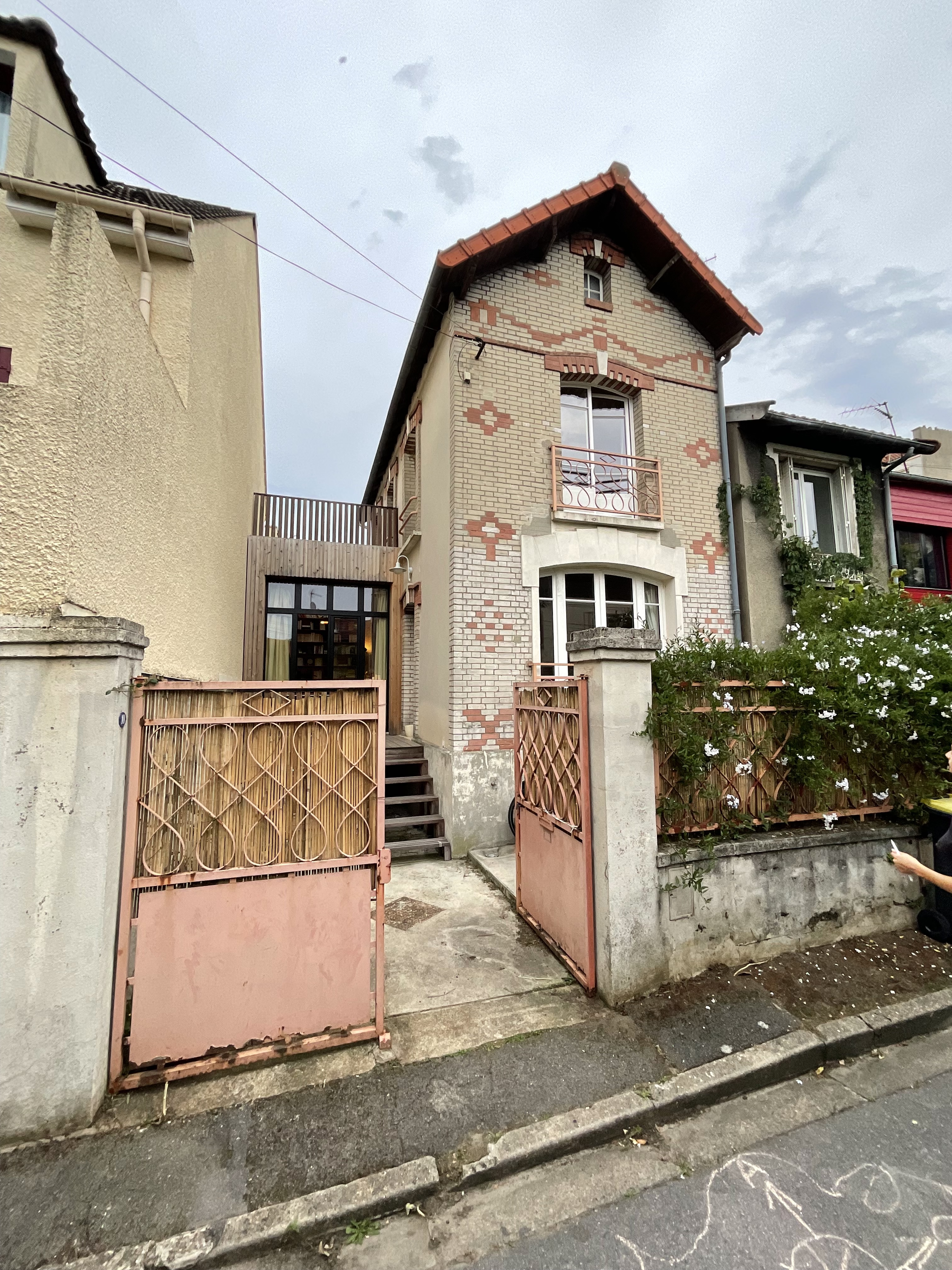 Cette petite maison ouvrière datant du début du siècle, a été entièrement rénovée, pour accueillir une famille de quatre personnes: aménagement des combles, de l’entresol, des pièces à vivre, etc. Une pièce en plus, destinée dans un premier temps à être une salle à manger, a été créée en construction bois, et pourra se transformer en chambre supplémentaire le moment voulu.